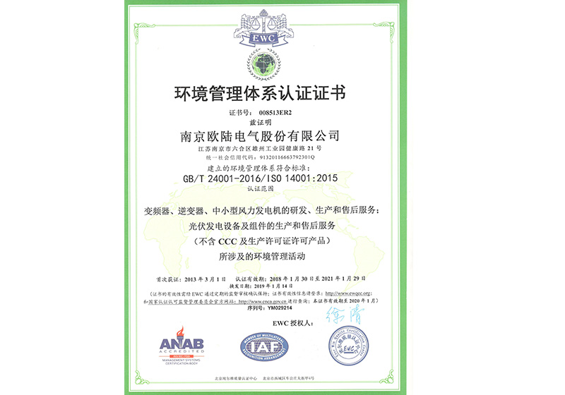 • 環境管理體系認證證書